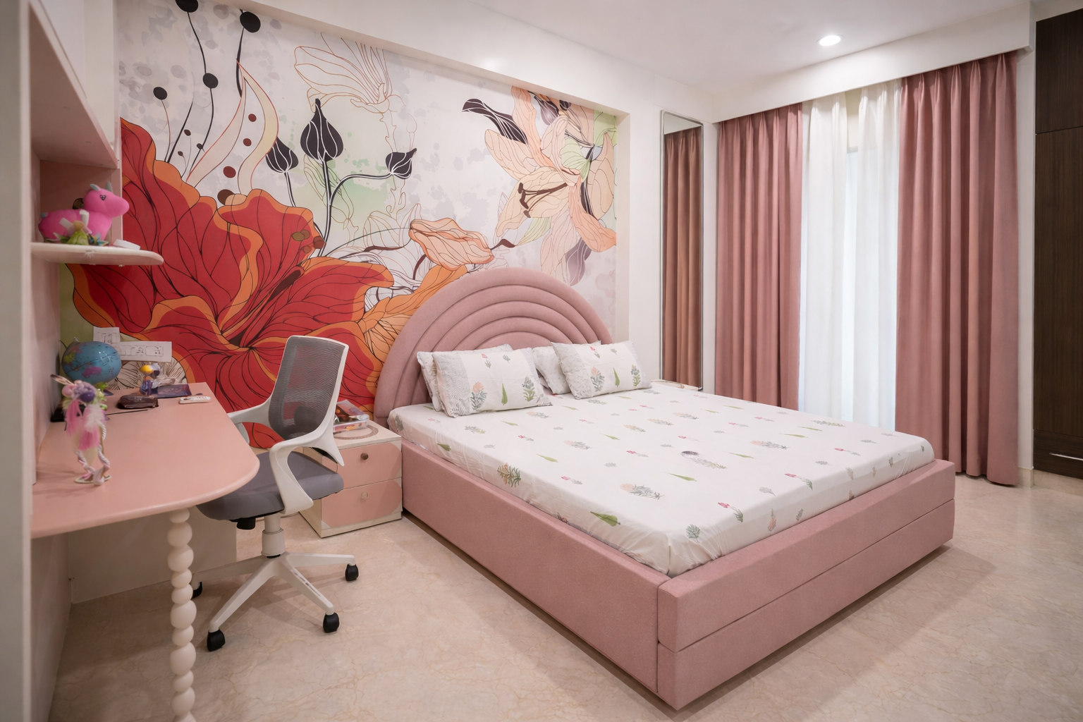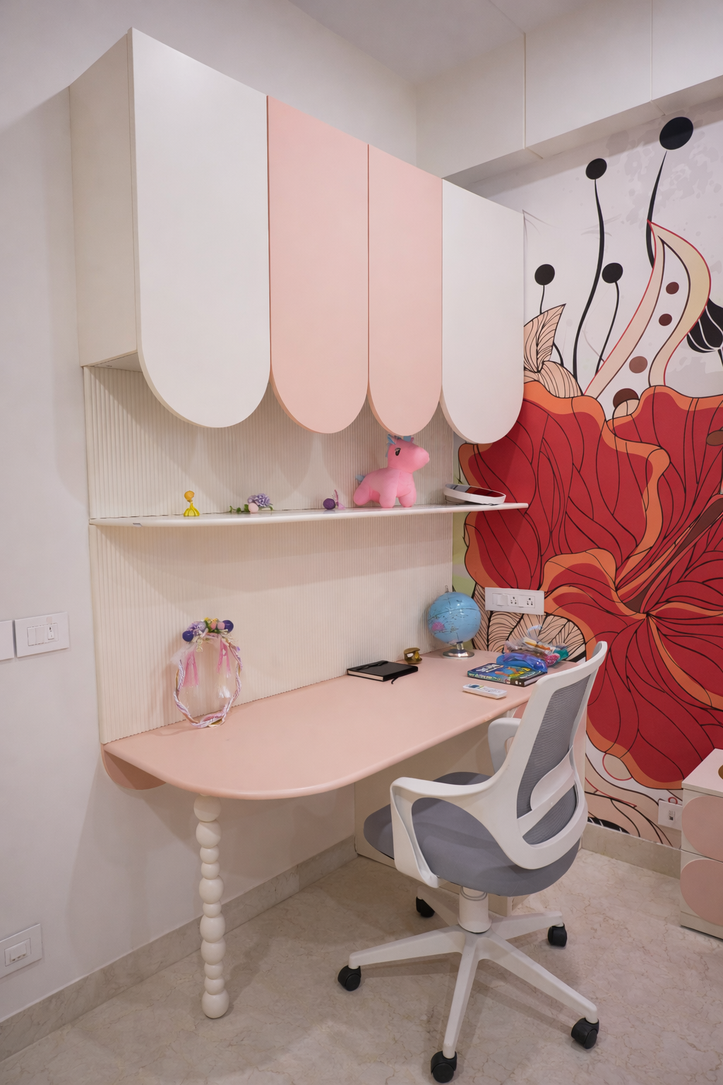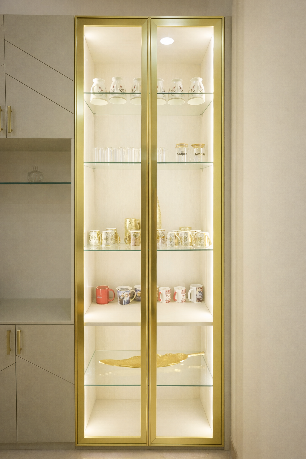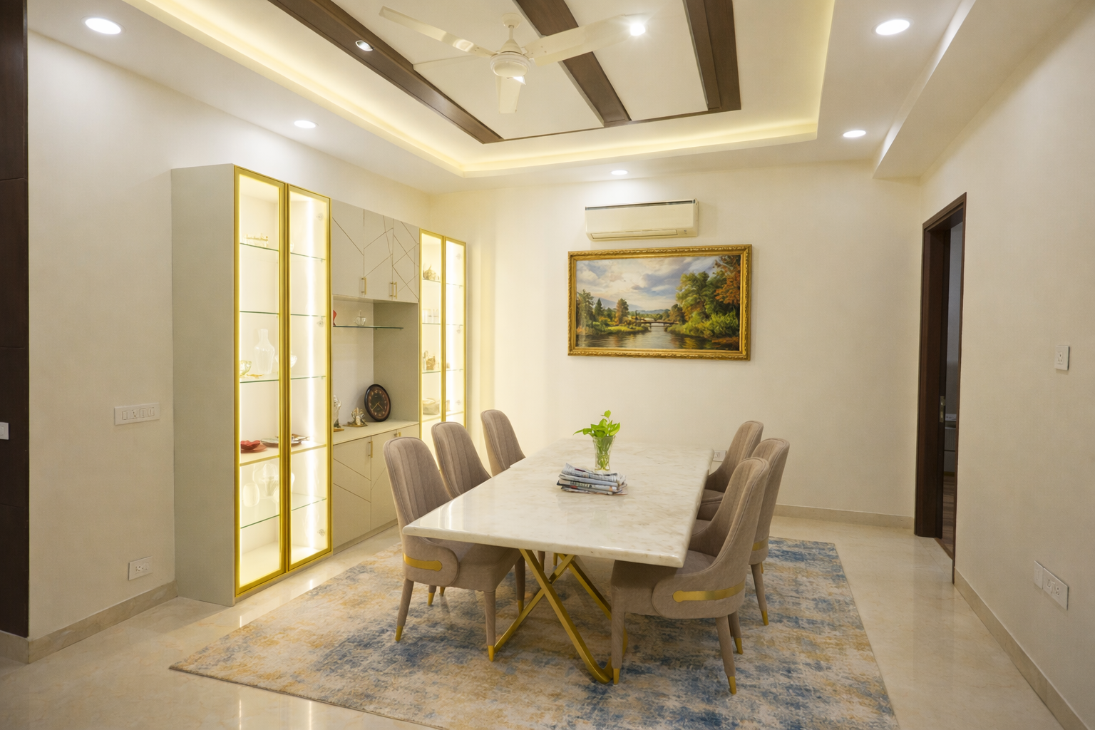 A soft beige palette forms the foundation of the interiors, lending a sense of warmth, calm, and timeless appeal. This neutral canvas is gently enlivened with carefully placed pops of color, adding character and visual interest without overwhelming the space. Every element has been curated to feel cohesive, purposeful, and effortlessly sophisticated.