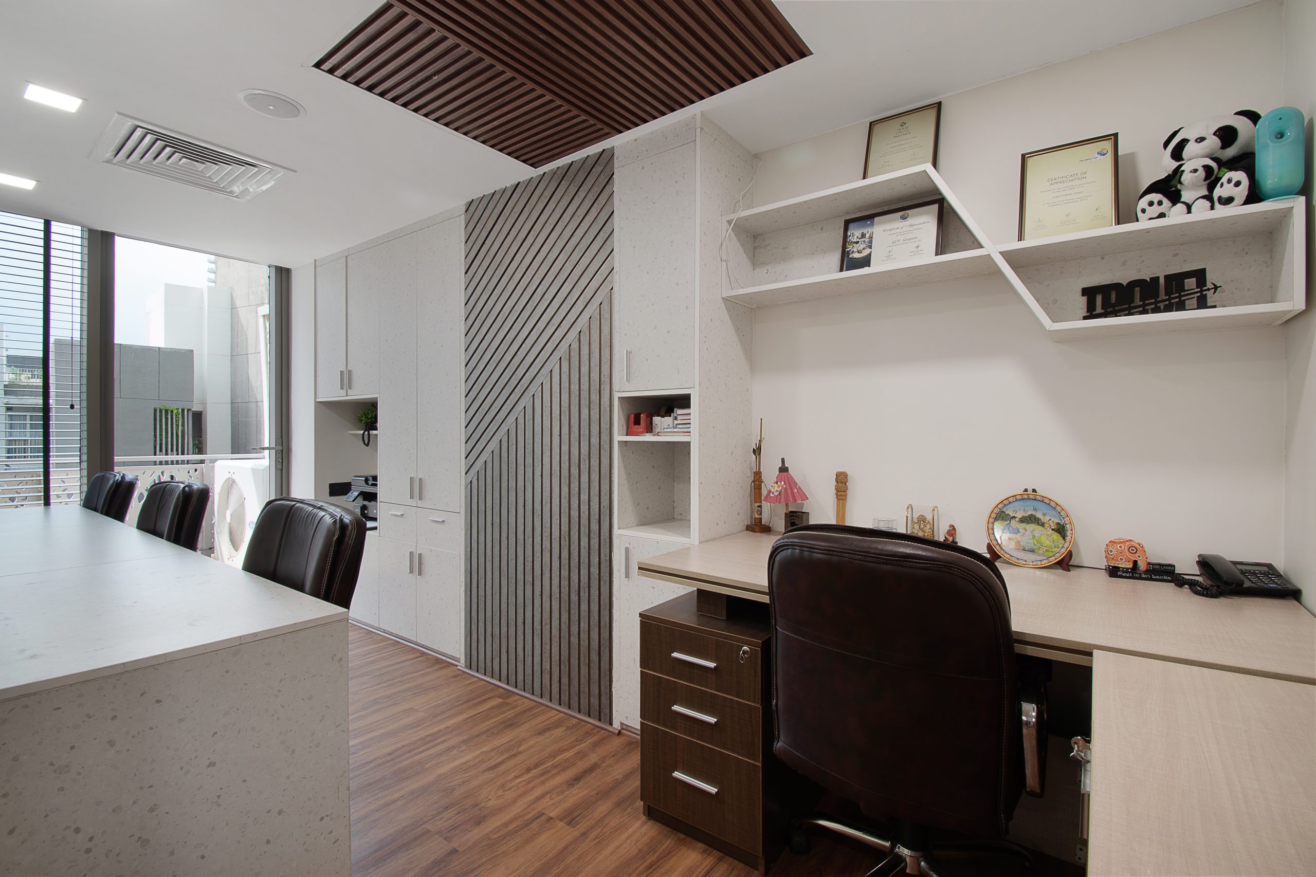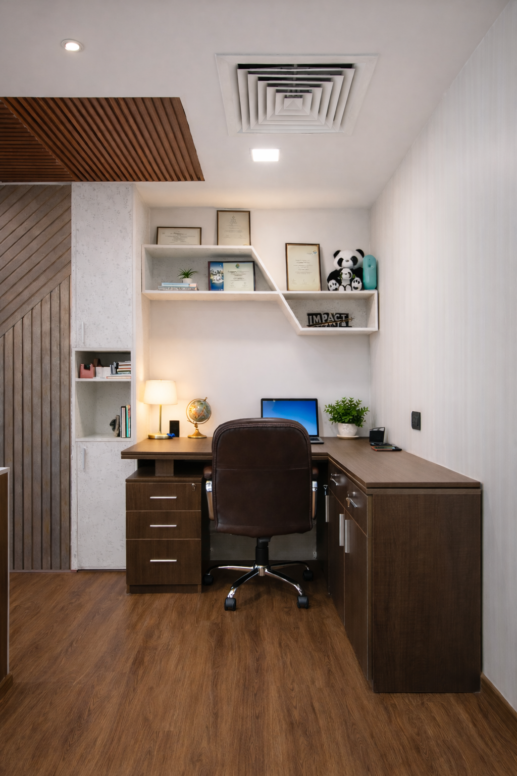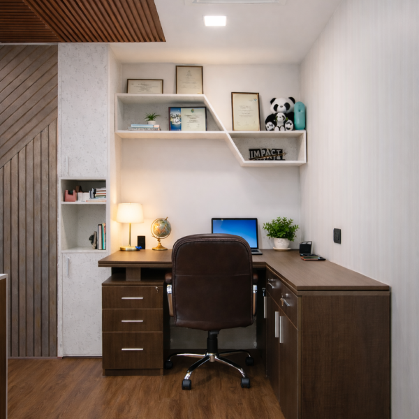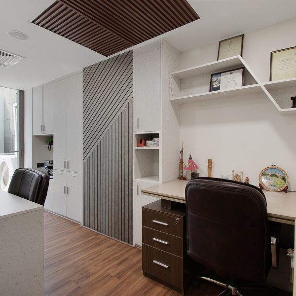 It has a warm reception, a lounge, 2 MD Cabins, workstations and a pantry.
