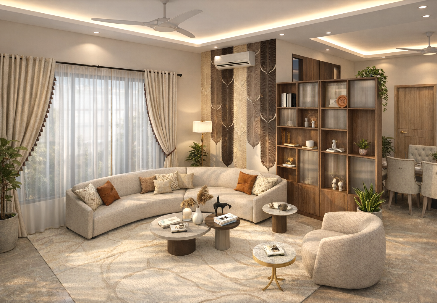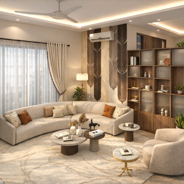 Located in Varanasi, this four-story home has been thoughtfully designed to suit two young couples, their children, and their parents. It beautifully blends traditional charm with modern living, creating a space that feels both timeless and comfortable.